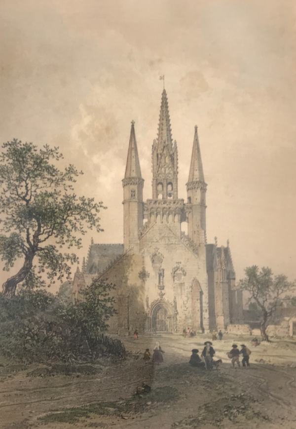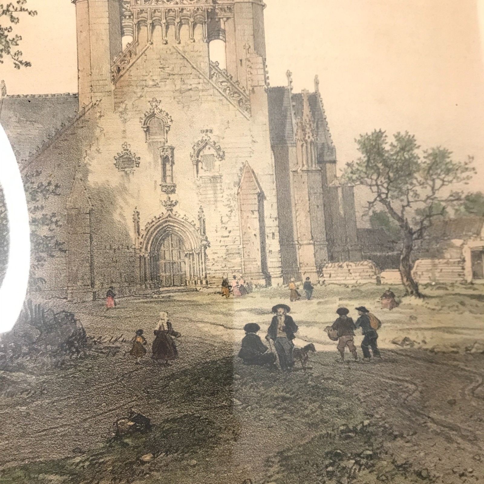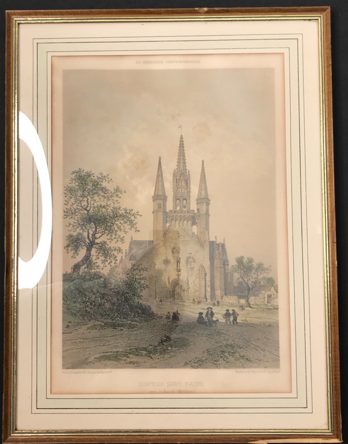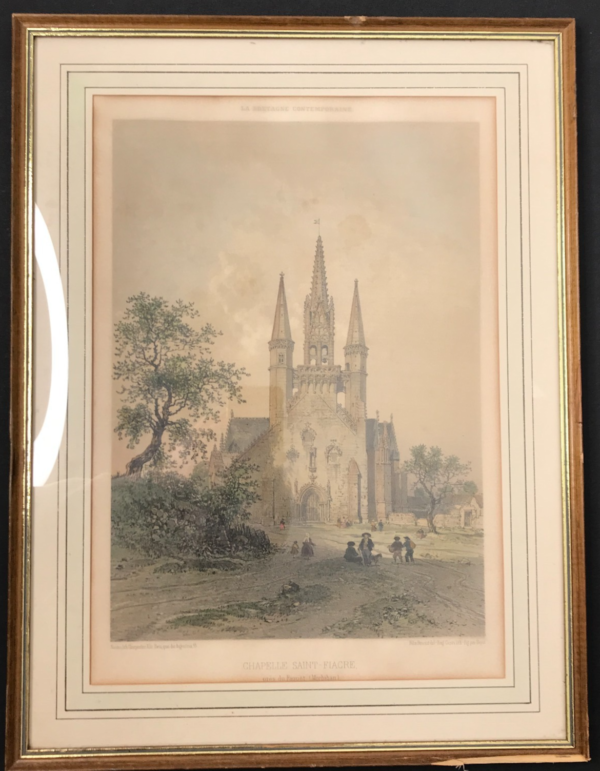 Lithograph SAINT FIACRE CHAPEL Le Faouët Britanny 1867