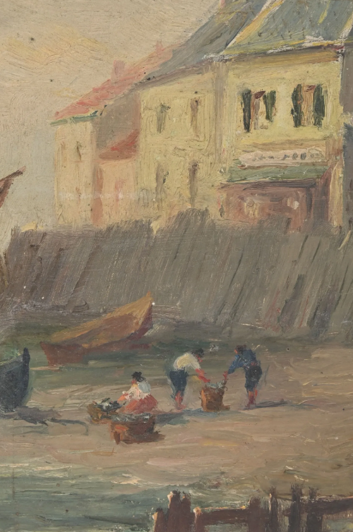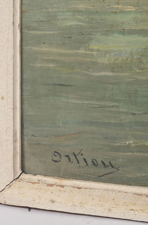 VERY GOOD CONDITION, oil on wood, signed Paul ORTIOU (1867 -? ) Breton port, 41.5 cm x 59 cm frame, Multi-medal winning artist in salons as indicated on the label on the back. see photos !!