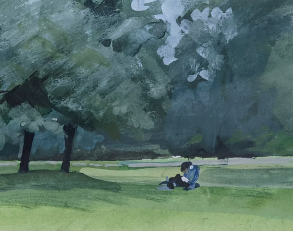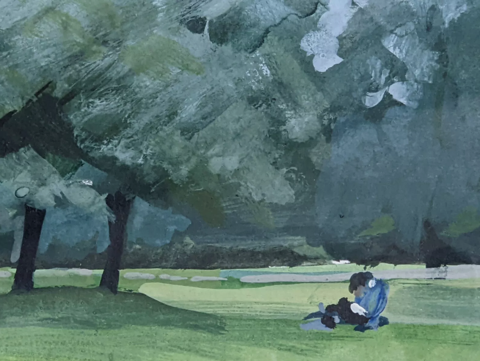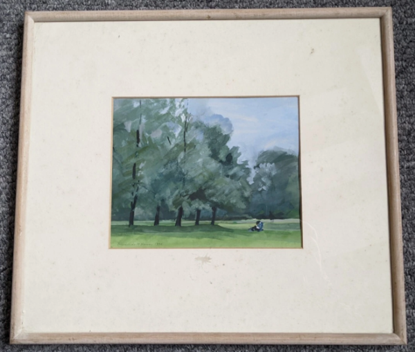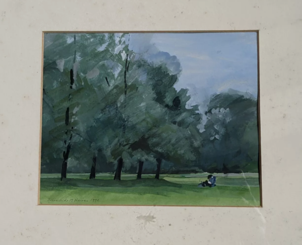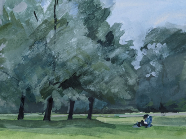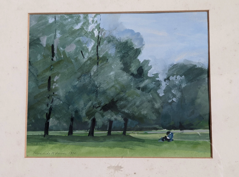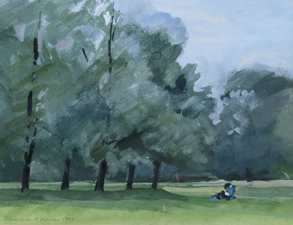 watercolor ROSESEMONDE M. NAIRAC reading Kensington garden
