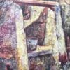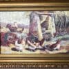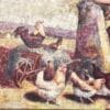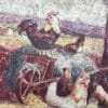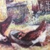 Peinture de coqs et poules dans une ferme. Huile sur panneau non signé en très bon état.