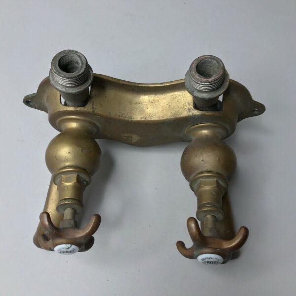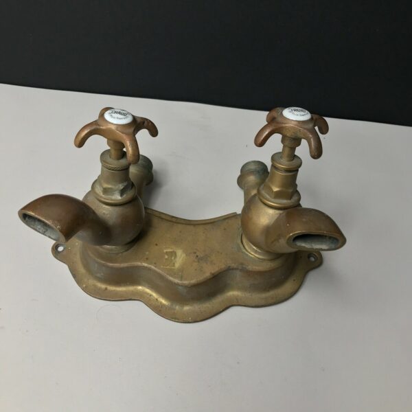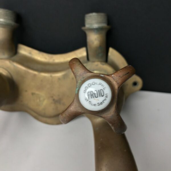 ROBINET EN BRONZE laiton chaud froid en faïence XIX eme XX VINTAGE fontionnel
