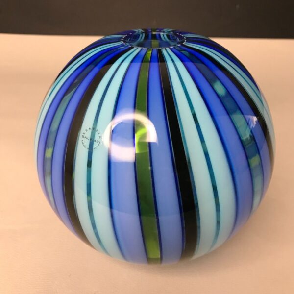 Vase PERLE n°2 blu medio verde SALVIATI MURANO Venise vintage