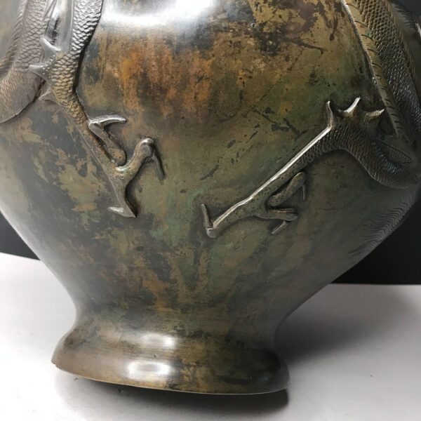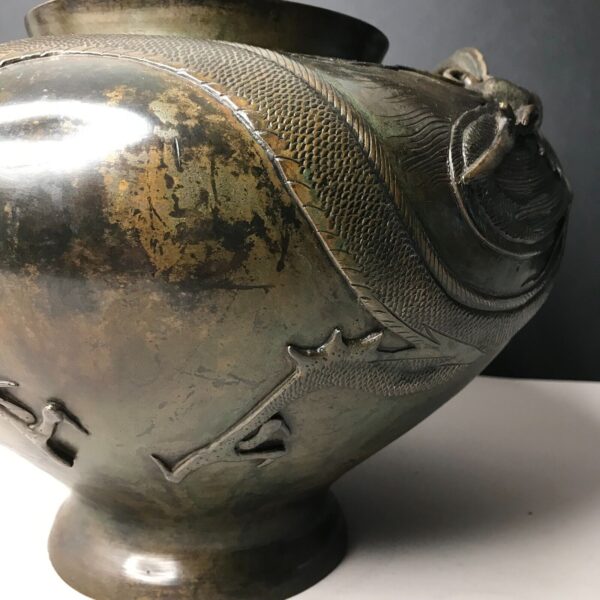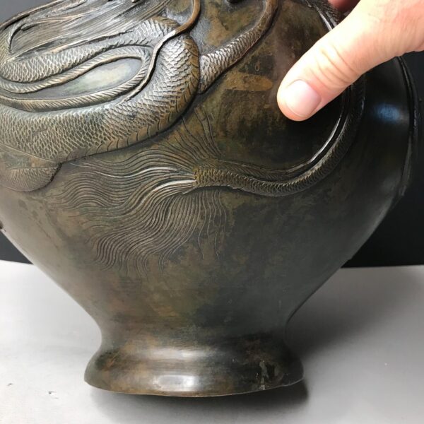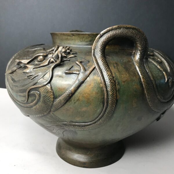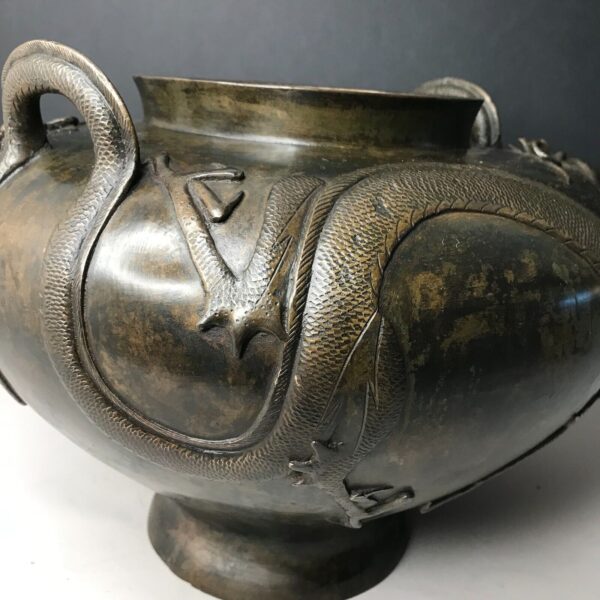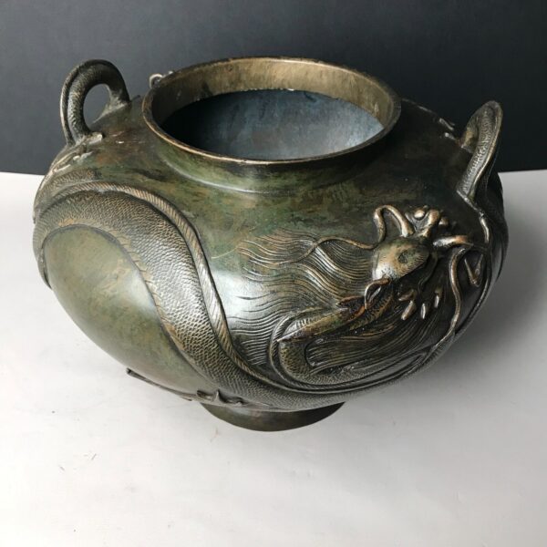 Vase signé jardinière DRAGON D’EAU Japon MEIJI Bronze fonte 19e vintage ancien